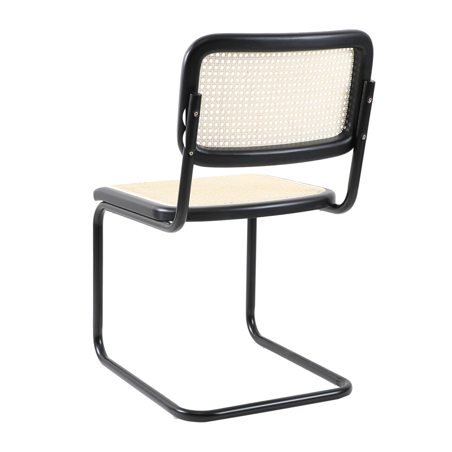 Krzesło VIENNA wykonane z naturalnego rattanu i czarnego drewna osadzone na stalowej ramie w kolorze czarnym.