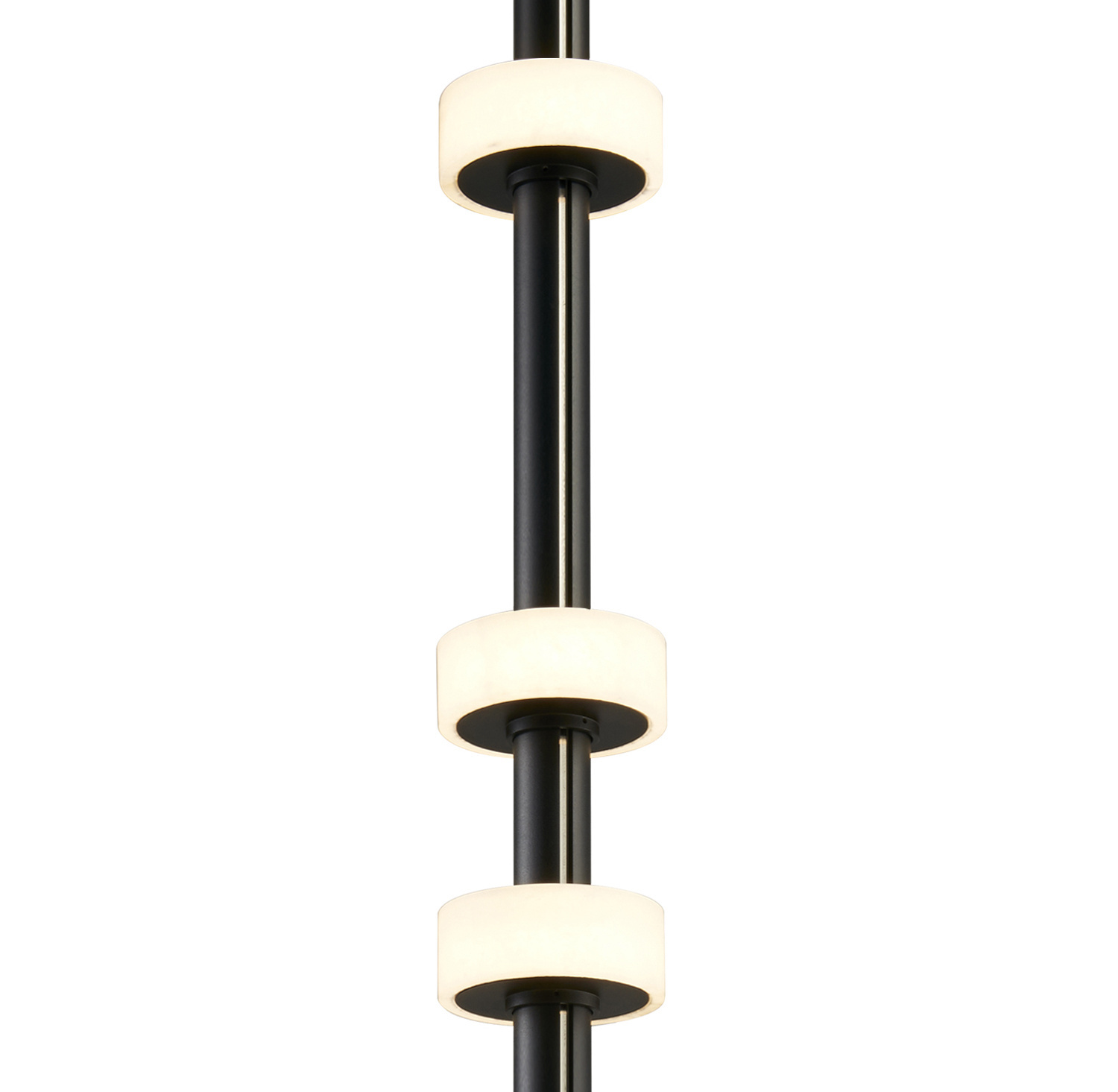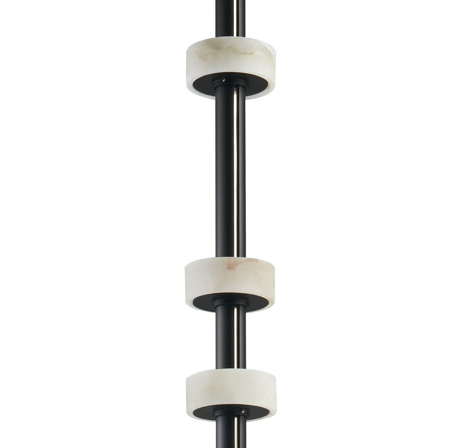 Lampa jest przepasana marmurowymi pierścieniami dekoracyjnymi skrywającymi źródło światła led.