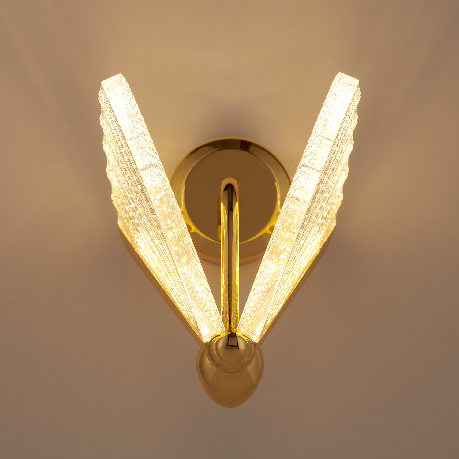 Lampa ścienna BEE przypomina swoim kształtem  pszczołę lub motyla. Delikatne, wygięte linie tworzą sylwetkę owada, a transparentne skrzydła nadają jej lekkości i zwiewności.