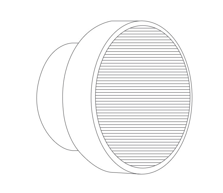Klosz: Okrągły, przezroczysty akryl z pionowymi prążkami i matowym pasem