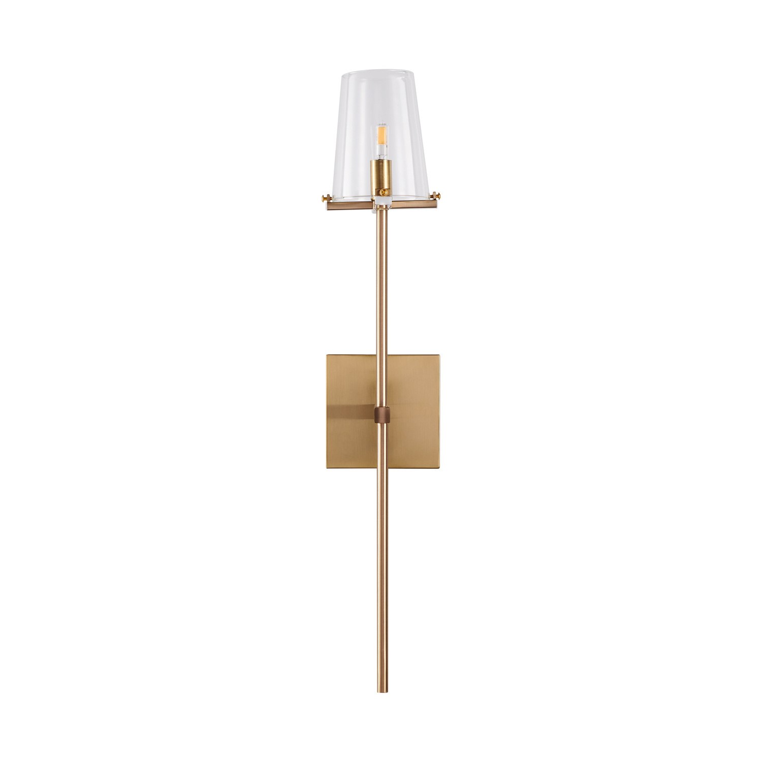 Kinkiet posiada prosty, cylindryczny szklany klosz, który daje miękkie, rozproszone światło.