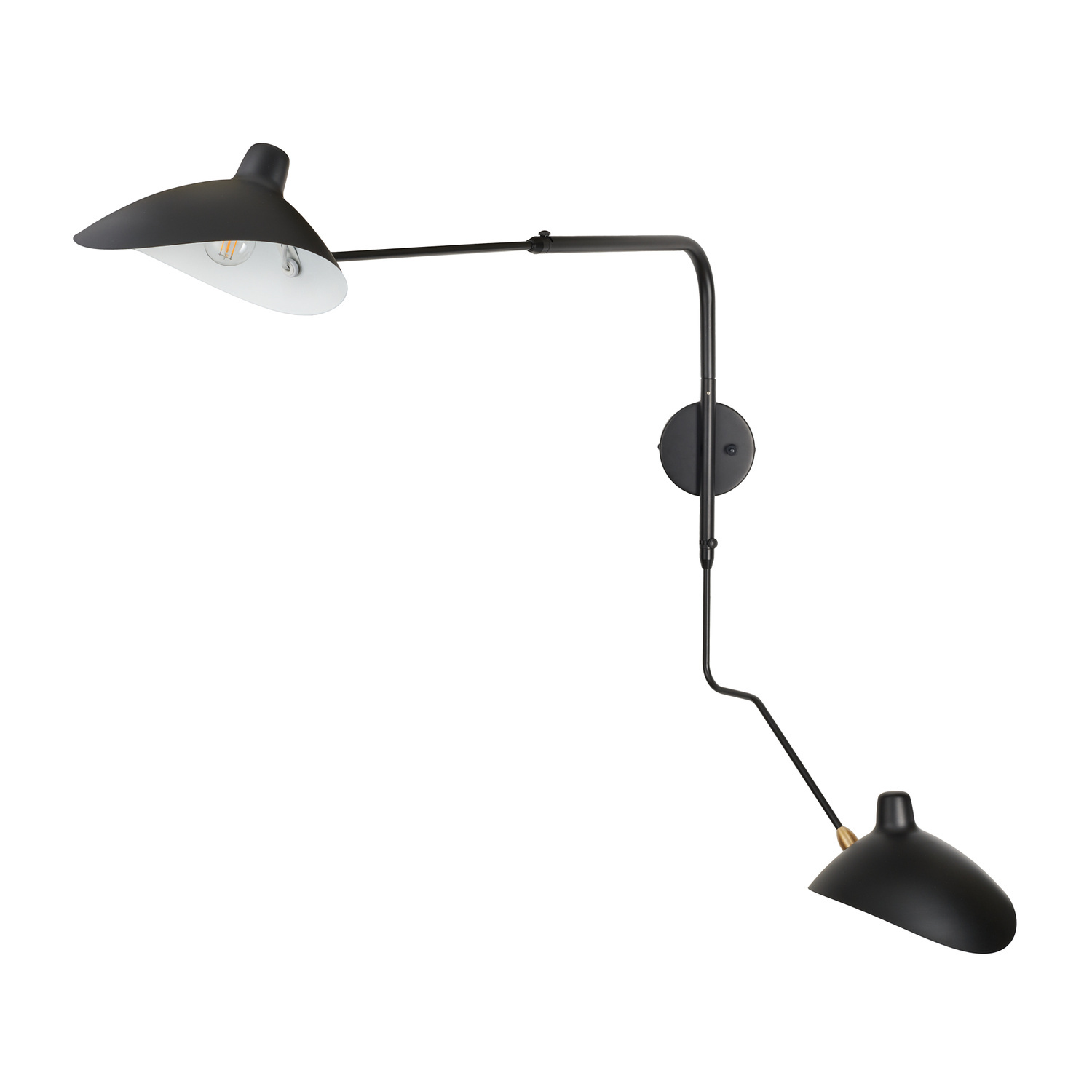 - Dwuramienna lampa ścienna CRANE - S wykonana z metalu w kolorze czarnym.