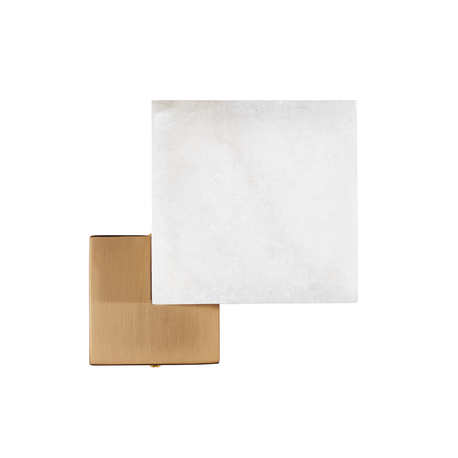 - Minimalistyczny kinkiet z marmurowym kloszem i szczotkowanym złotym uchwytem, doskonały do nowoczesnych, stylowych sypialni, korytarzy czy salonu.