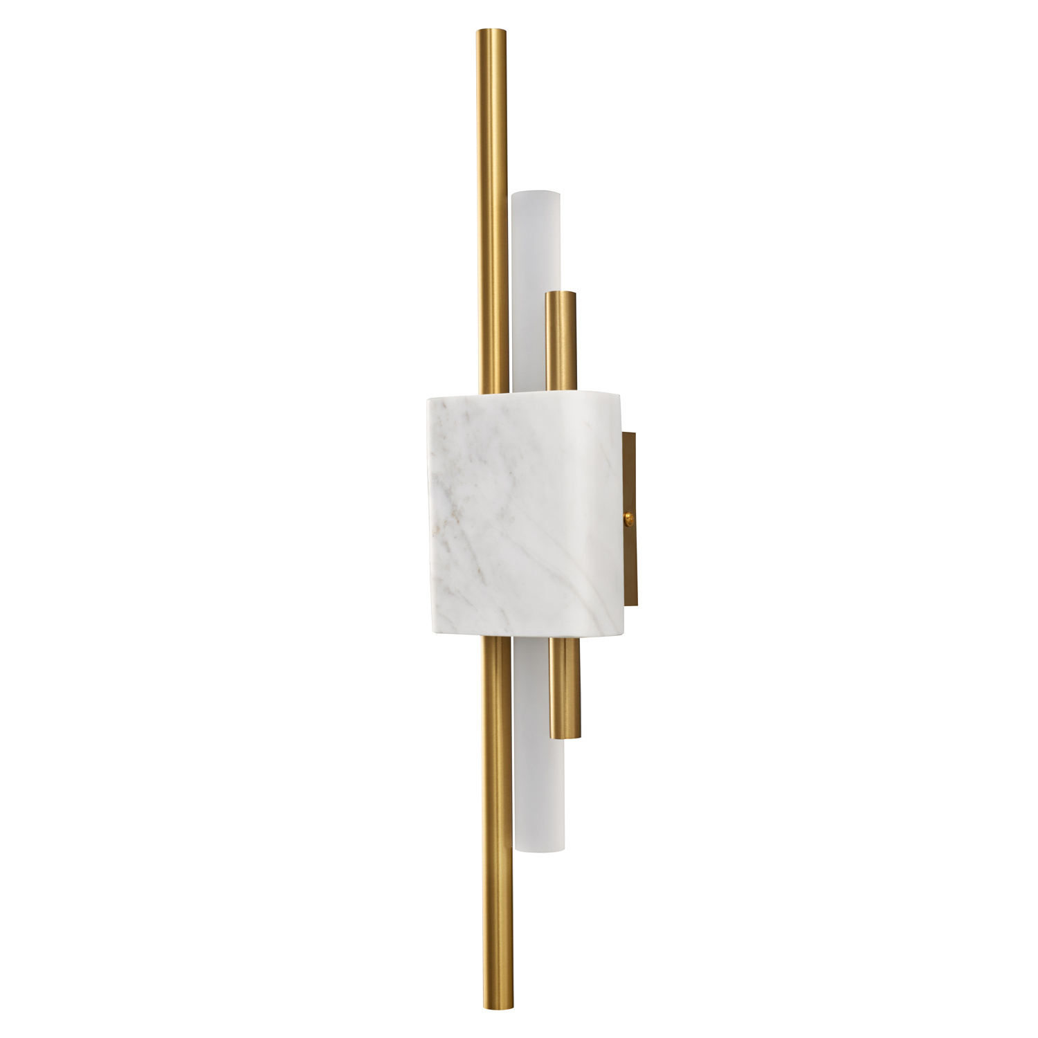 Lampa ścienna ELLIE wykonana została z naturalnego białego marmuru oraz złotych elementów metalowych, pod którymi skrywa się ledowe źródło światła.