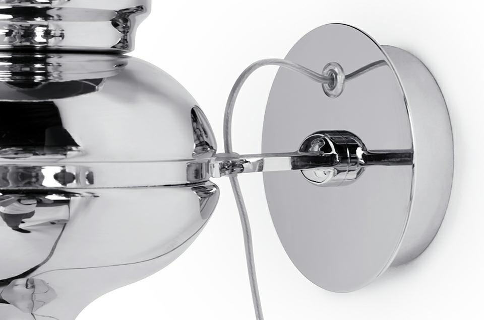 - Kinkiet Queen to klasyczna lampa w nowoczesnym wydaniu. Jest elegancka i wyrazista, a zarazem minimalistyczna. Gładki abażur został wykonany z tworzywa sztucznego i jest błyszczący. Stelaż lampy został uformowany z aluminium i ma lustrzany połysk. Prostot