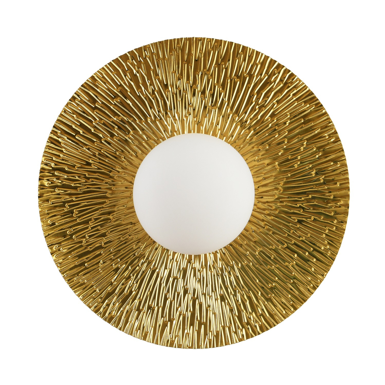 Lampa ścienna SUN to dekoracyjny, nowoczesny kinkiet o okrągłym kształcie w kolorze złotym.