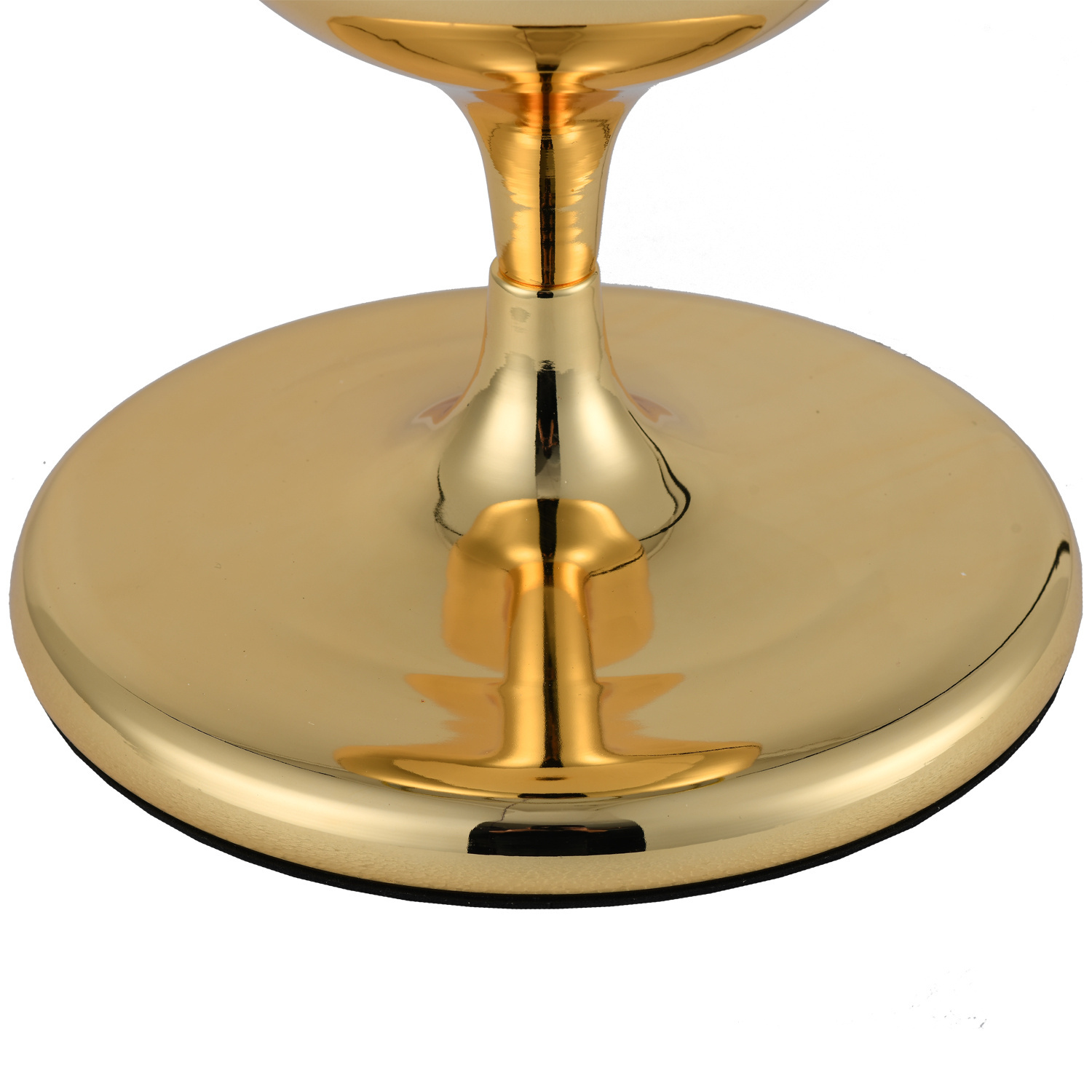 Lustrzana złota powłoka wewnątrz klosza odbija światło nadając mu ciepła barwę.
