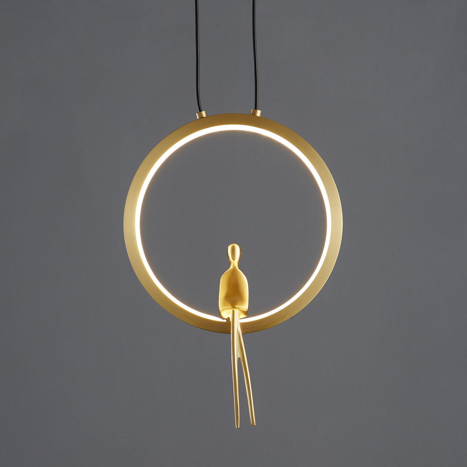 Lampa wisząca AMICI  w kształcie pierścienia/okręgu wykonana została w całości ze szczotkowanego mosiądzu.