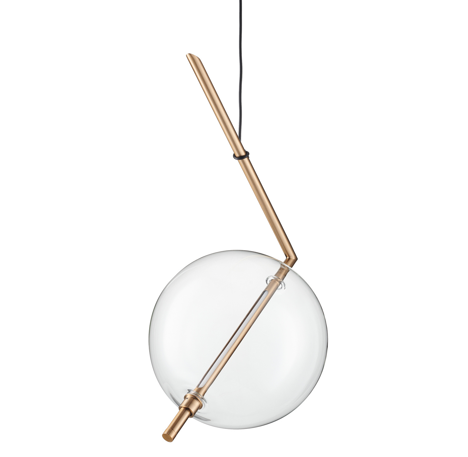 Wyjątkowa lampa wisząca AMORE wykonana została z metalu w kolorze złotym oraz szklanego transparentnego klosza