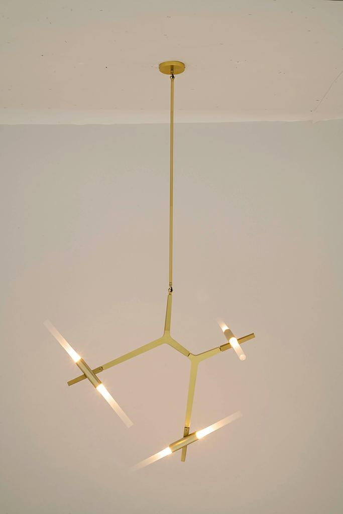 - Lampa Candelabr 6 składa się z aluminiowych wygiętych ramion w kolorze złotym. Ramiona są zakończone szklanymi, satynowymi kloszami. Całość jest inspirowana gałęzią drzewa. Lampa występuje w różnych rozmiarach. Światło: 6 x G9 max. 3,5 W (brak w zestawie)