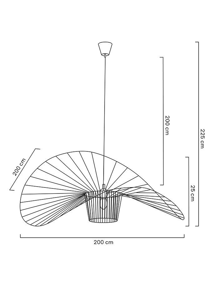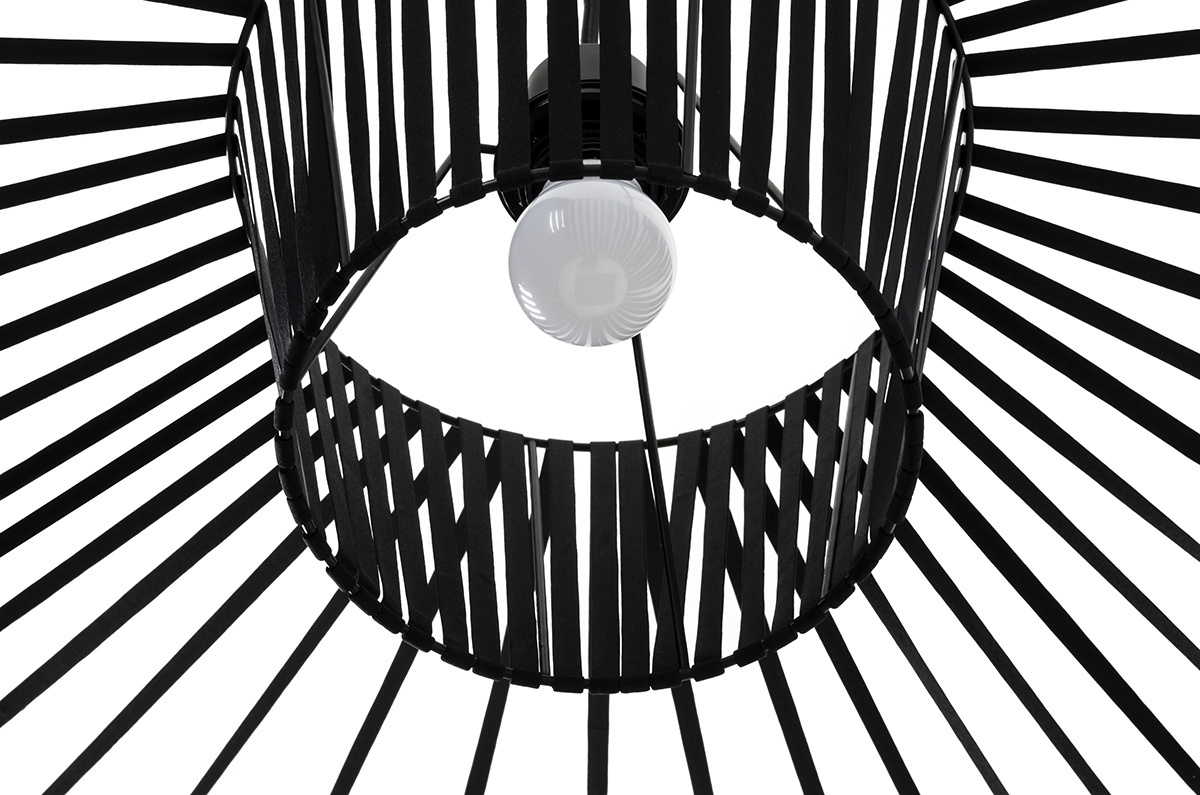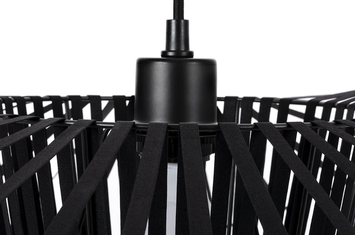 - Lampa wisząca Capello Fi 200 w kolorze czarnym, wykonana została z obręczy z tworzywa. Obręcz za pomocą tasiemek połączona jest z wewnętrznym kloszem, skrywającym żarówkę. Tworząc lekką konstrukcję, przypominającą kształtem elegancki damski kapelusz. Dzię