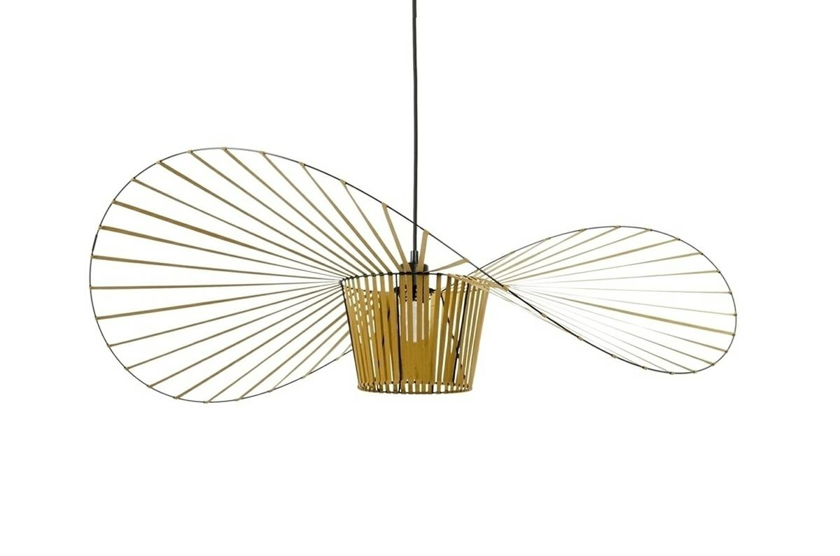 • Lampa wisząca Capello Fi 80 w kolorze złotym, wykonana została z obręczy z tworzywa. Obręcz za pomocą tasiemek połączona jest z wewnętrznym kloszem, skrywającym żarówkę. Tworząc lekką konstrukcję, przypominającą kształtem elegancki damski kapelusz. Dzięki