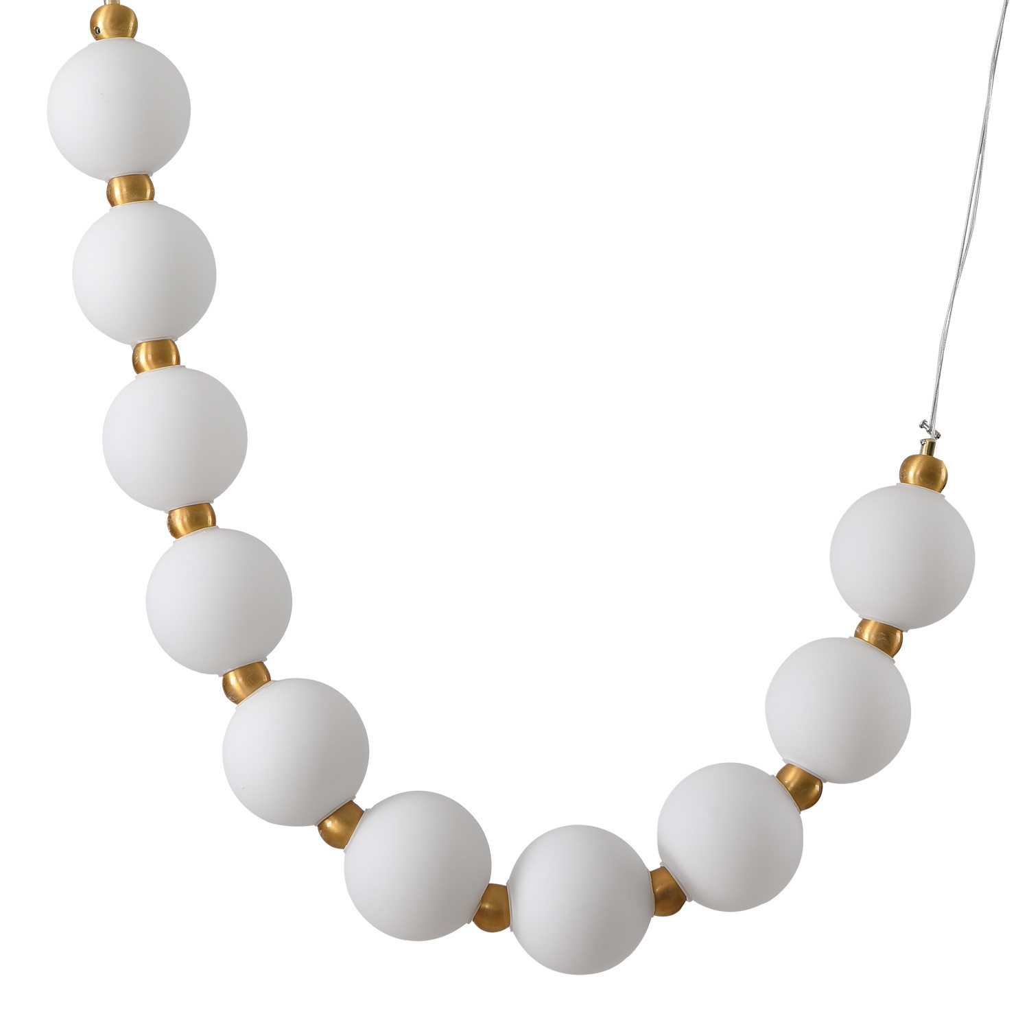 Wykonana jest z 10 szklanych mlecznych kul nanizanych na transparentny przewód.