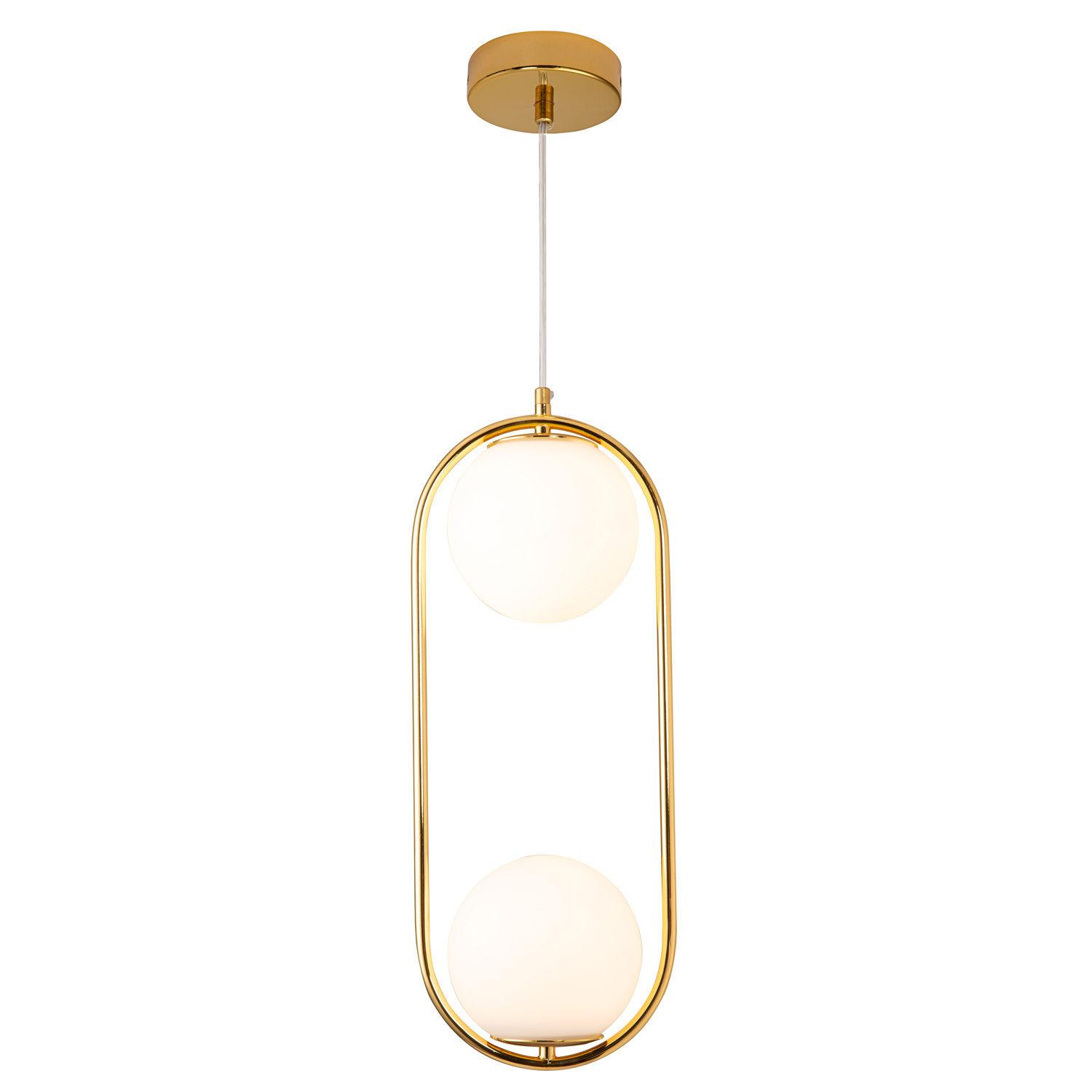 - Lampa wisząca wykonana z metalu oraz dwóch mlecznych kloszy.