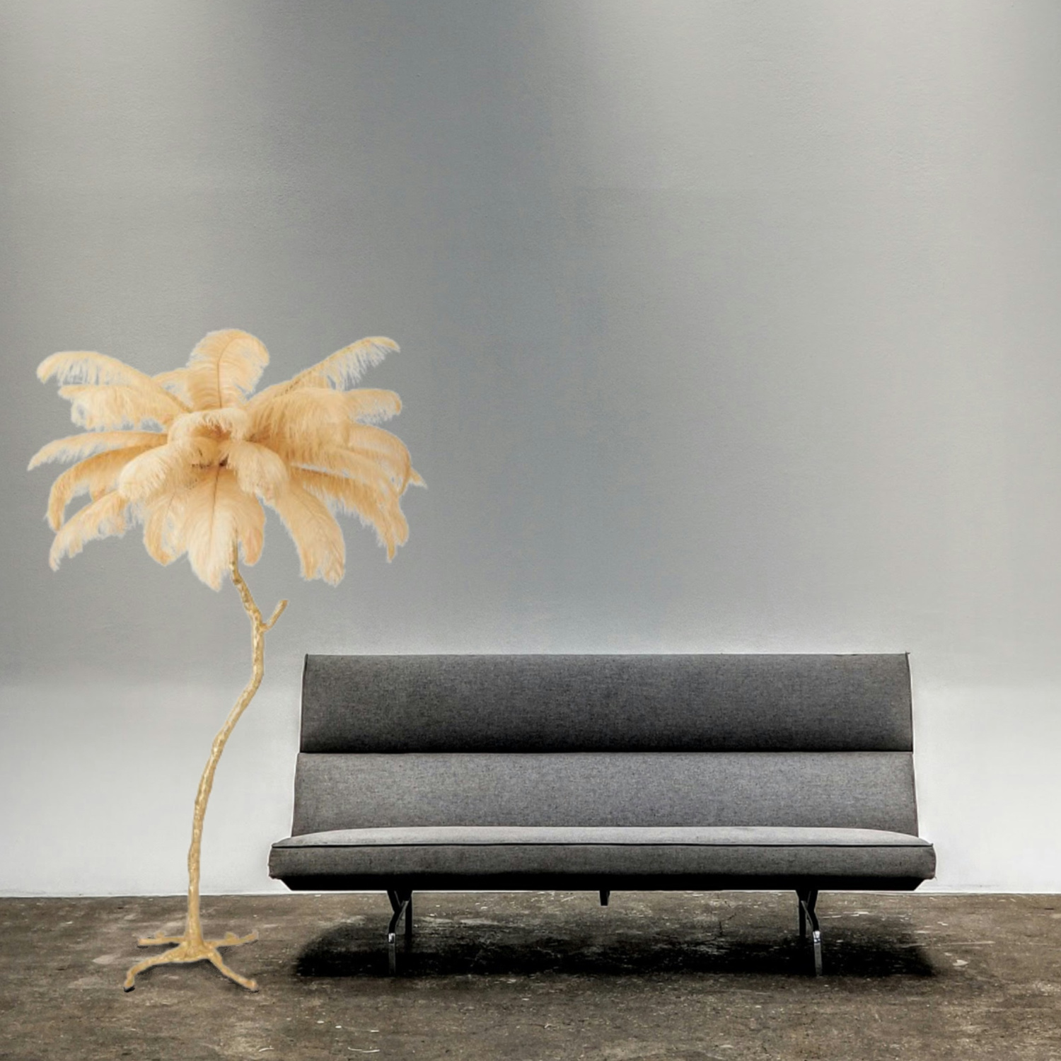 Jej klosz wykonany z delikatnych, beżowych piór tworzy subtelny, naturalny wygląd, który doskonale wpisuje się w różnorodne aranżacje wnętrz.