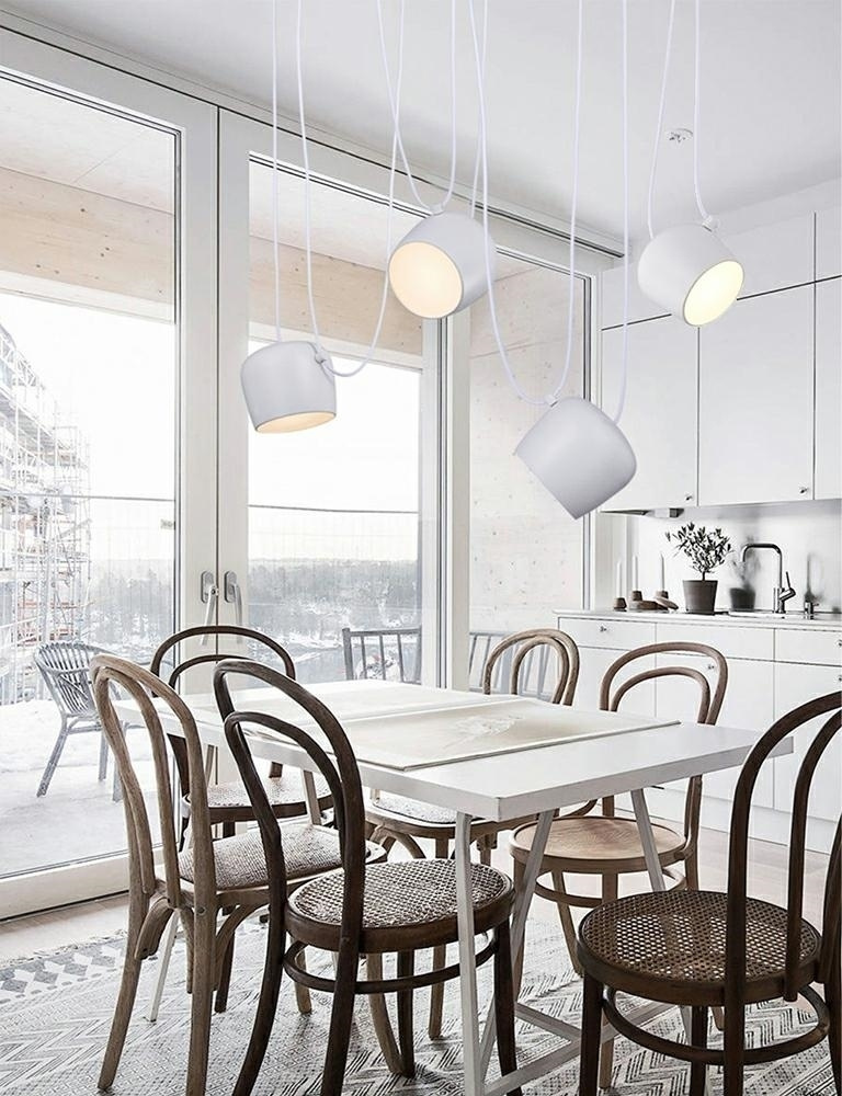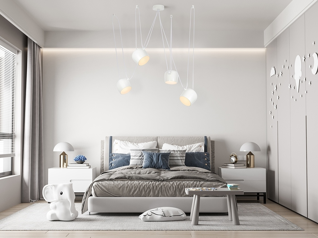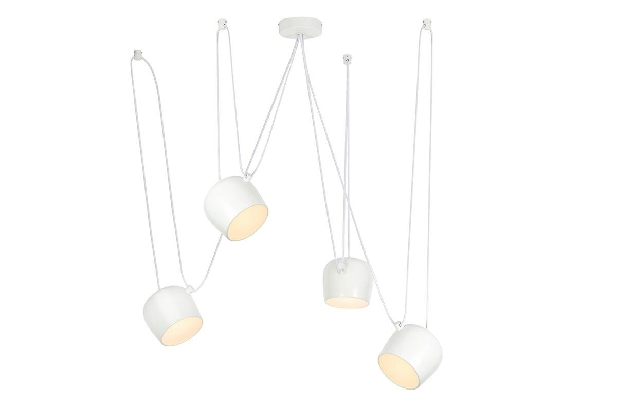 - Lampa Eye 4 biała. Propozycja dla zwolenników aranżacji nawiązujących do stylu retro z odrobiną nowoczesności. Konstrukcja składa się z czterech reflektorów wyposażonych w moduły Ledowe. Jedną z największych zalet jest możliwość rozmieszczenia reflektorów