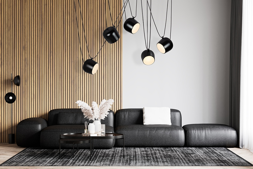 - Lampa wisząca Eye 5. Konstrukcja składa się z pięciu reflektorów wyposażonych w moduły Ledowe. Wszystkie reflektory podłączone są do jednej podsufitki. Jedną z największych zalet jest możliwość rozmieszczenia reflektorów w różnych odległościach od siebie