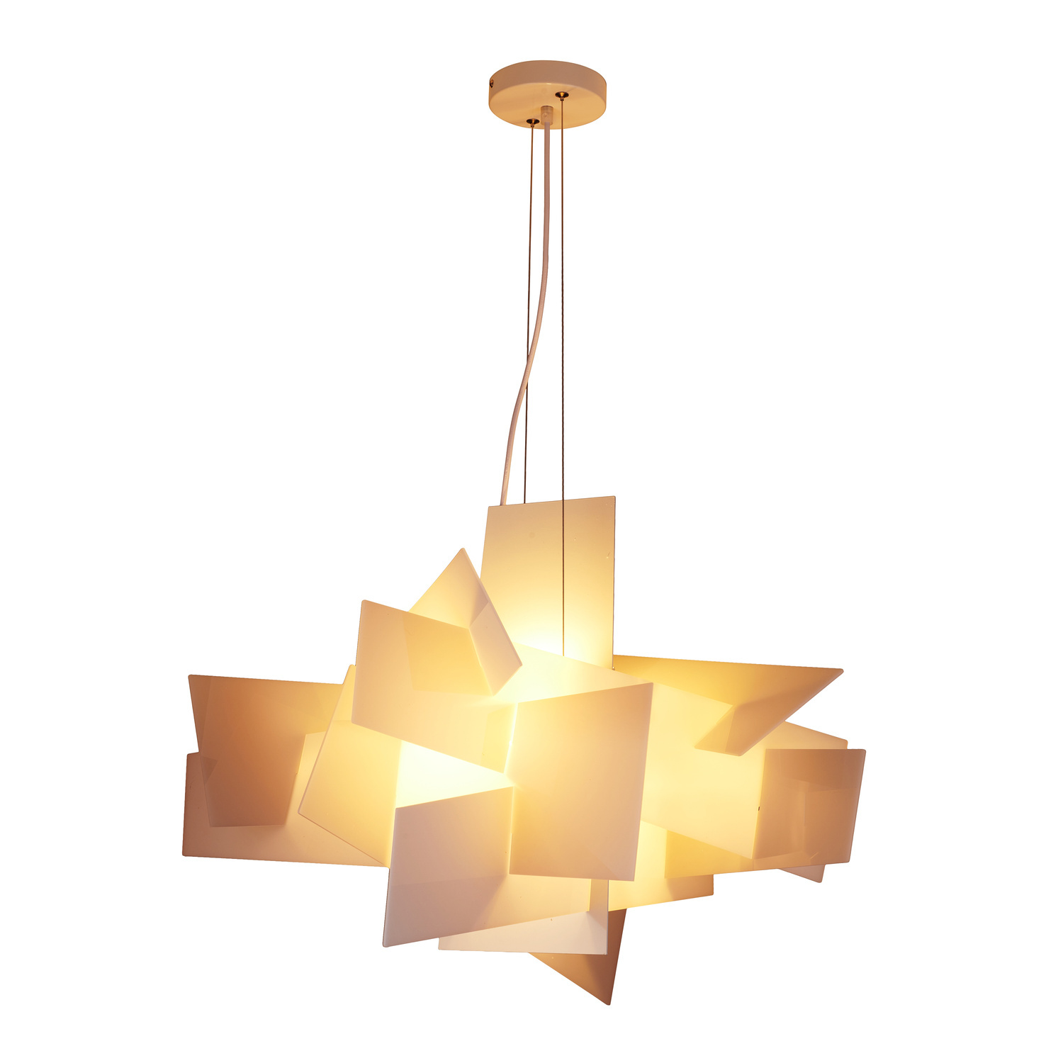 Lekki stelaż lampy przypomina swoim wyglądem papierową geometryczną bryłę co dodaje niewątpliwego dodatkowego uroku oprawie FAME.