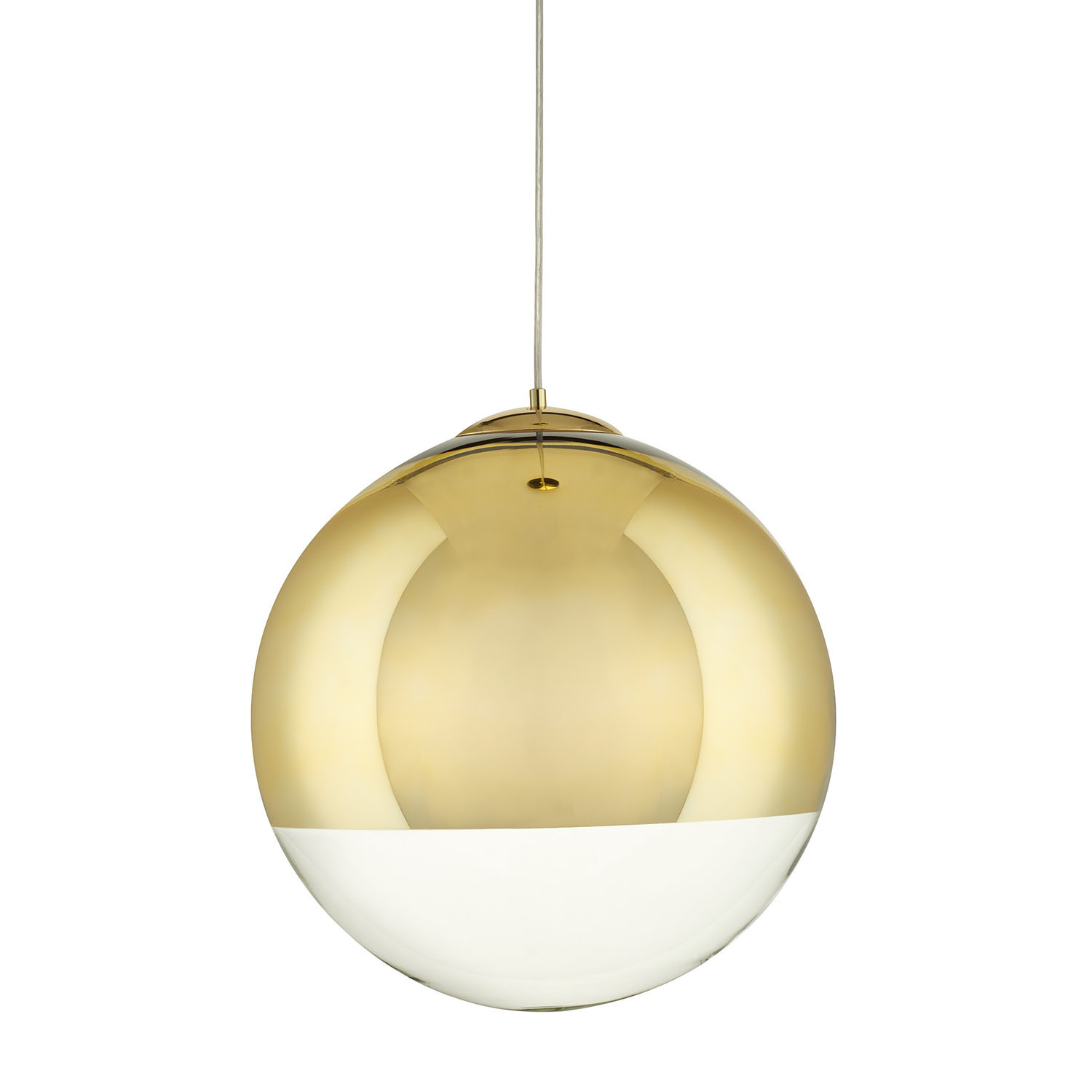 Lampa wisząca FLASH wykonana jest ze szkła, ma kształt kuli podzielonej na dwie części.