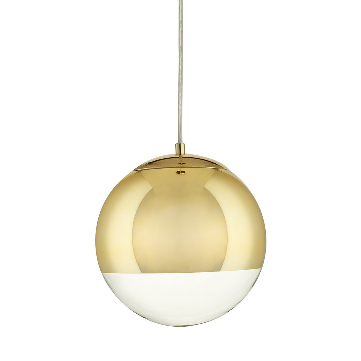 Lampa wisząca FLASH wykonana jest ze szkła, ma kształt kuli podzielonej na dwie części.