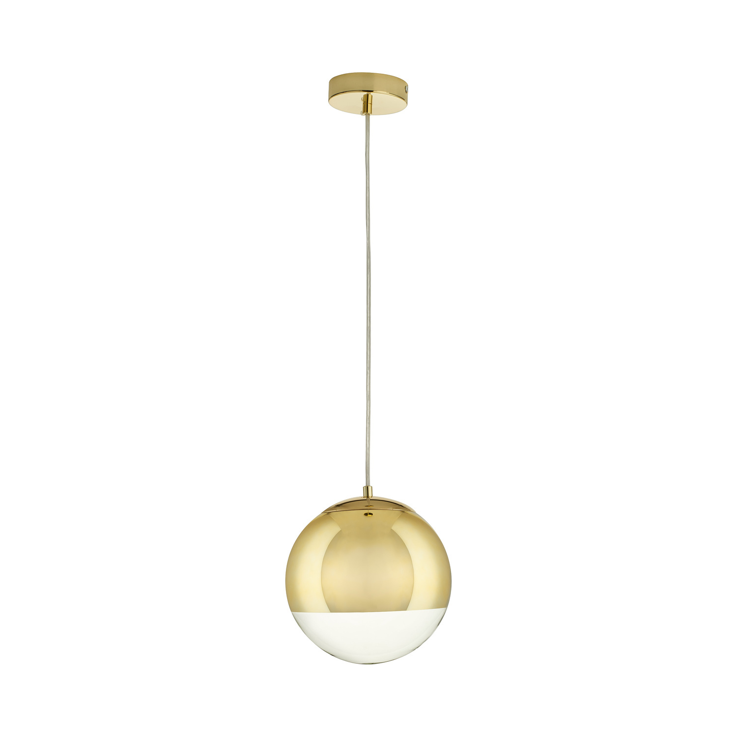 - Lampa wisząca o kształcie kuli, wykonana ze szkła.