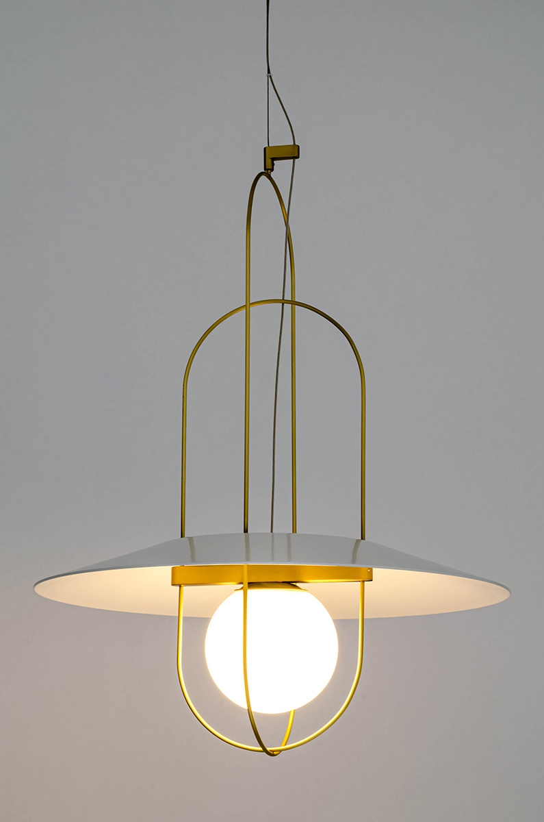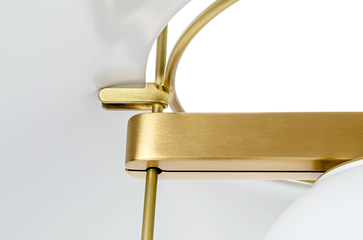 - Lampa wisząca Fuente. Wykonana została z połączenia mosiądzu, metalu i okrągłego klosza wykonanego z mlecznego szkła. Klosz umieszczony jest na mosiężnej konstrukcji. Wewnątrz skrywa Ledowe źródło światła o ciepłej barwie. Całość dopełnia metalowa oprawa,