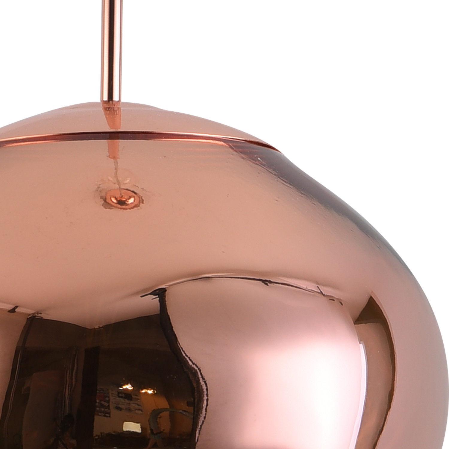Nieregularny klosz lampy GLAM wykonano z wysokiej jakości akrylu w kolorze miedzianym o lustrzanej powierzchni.