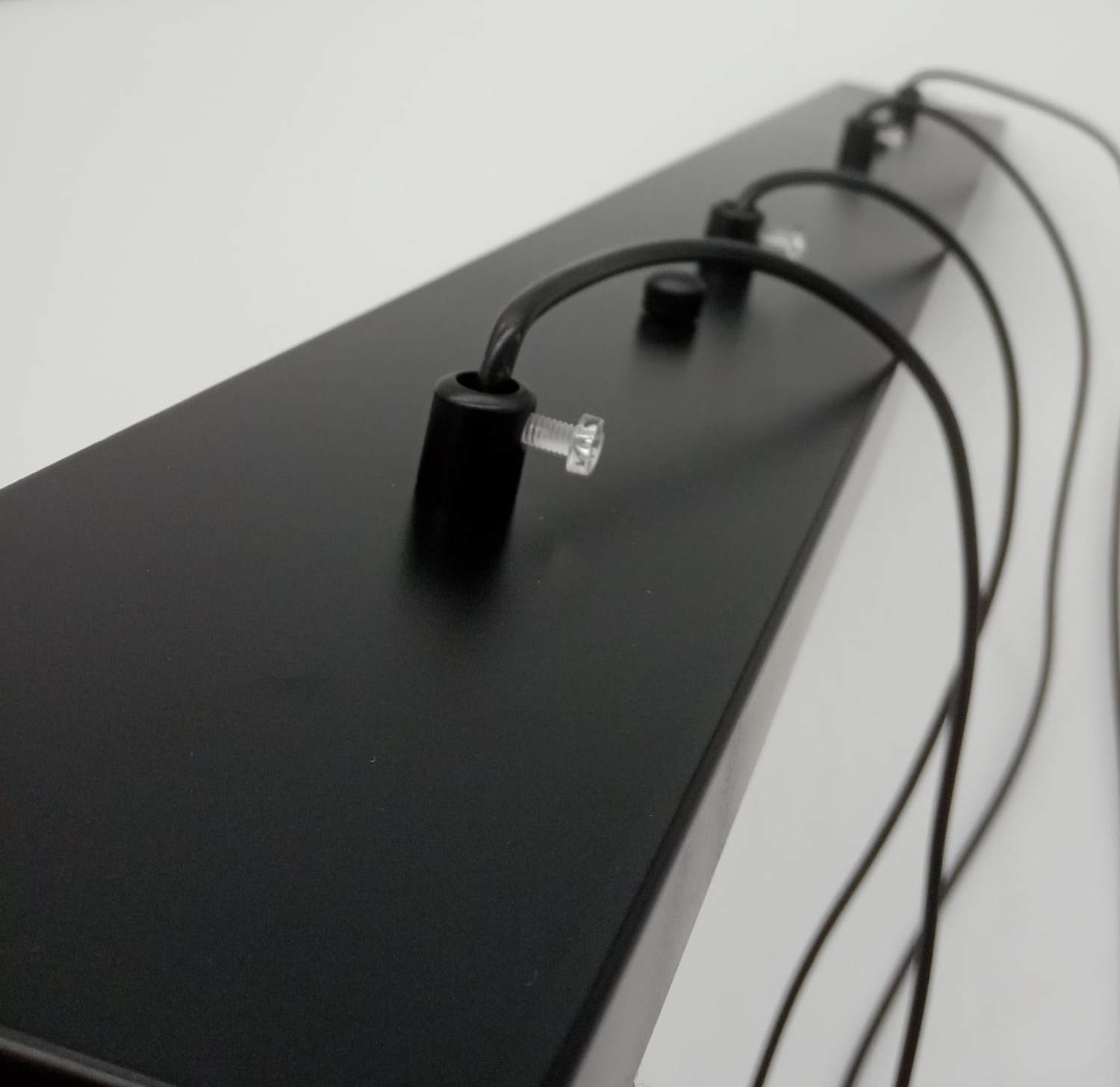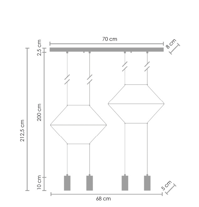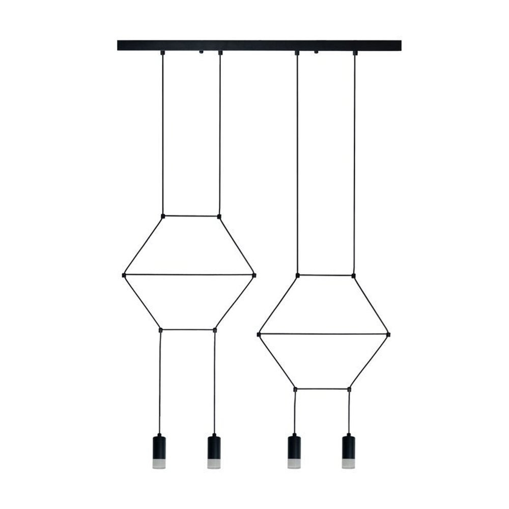 LINEA-4 LONG zasilana jest czteroma punktami świetlnymi zawieszonymi na delikatnych kablach.