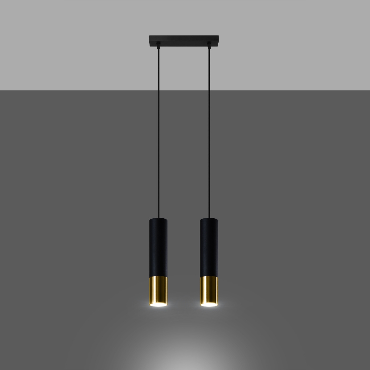 - Źródło światła: GU10, 2x max 10W LED, ~230V, 50Hz, IP20, klasa ochronności I Źródło światła nie jest w komplecie. Wymiary: 30/6/90 cmWymiary klosza: 6/29 cm Materiał: stal Kolor: czarny, złoty