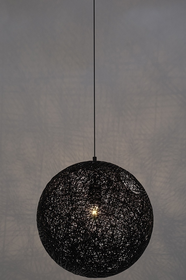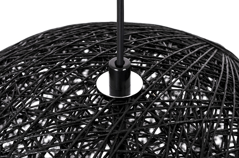 - Najmniejsza lampa z serii Luna, ma średnicę 40 cm. Przypomina księżyc – nie tylko kształtem, ale również strukturą. Została zainspirowana projektem „Random Mooi”. Cały abażur jest owinięty sznurem konopnym, który rozprasza światło i czyni lampę bardzo kli