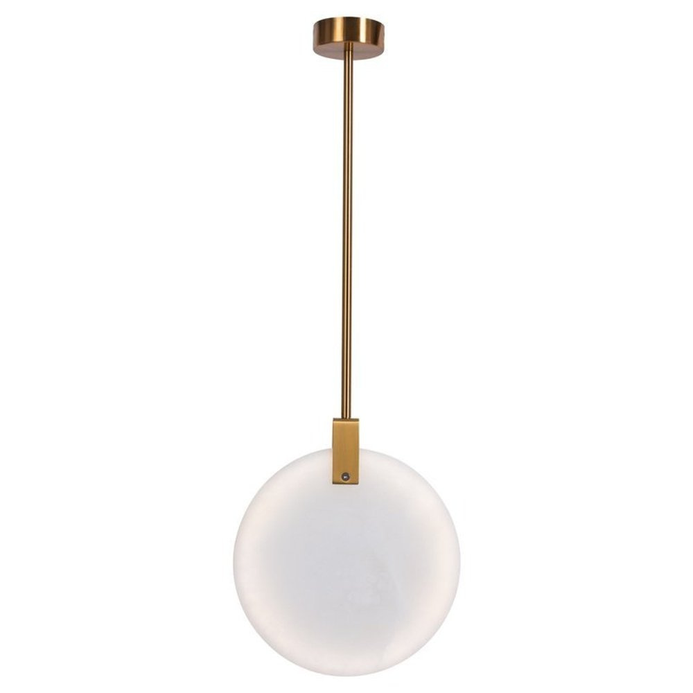 - Elegancka lampa wisząca wykonana z naturalnego marmuru z elementami metalowymi w kolorze szczotkowanego mosiądzu.