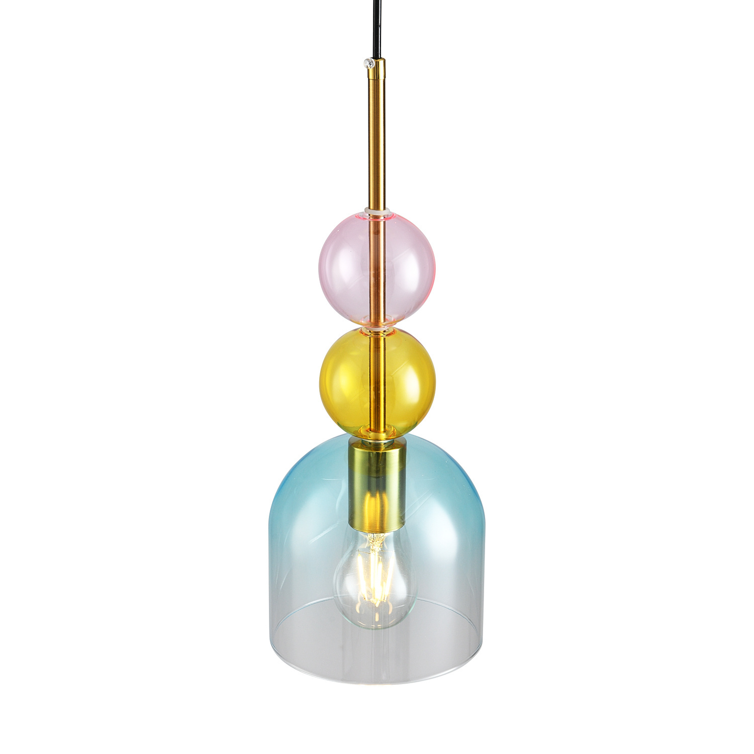 Jej oryginalny design, oparty na połączeniu złotych metalowych elementów i kolorowego szkła, nadaje wnętrzu lekkości i stylowego charakteru.