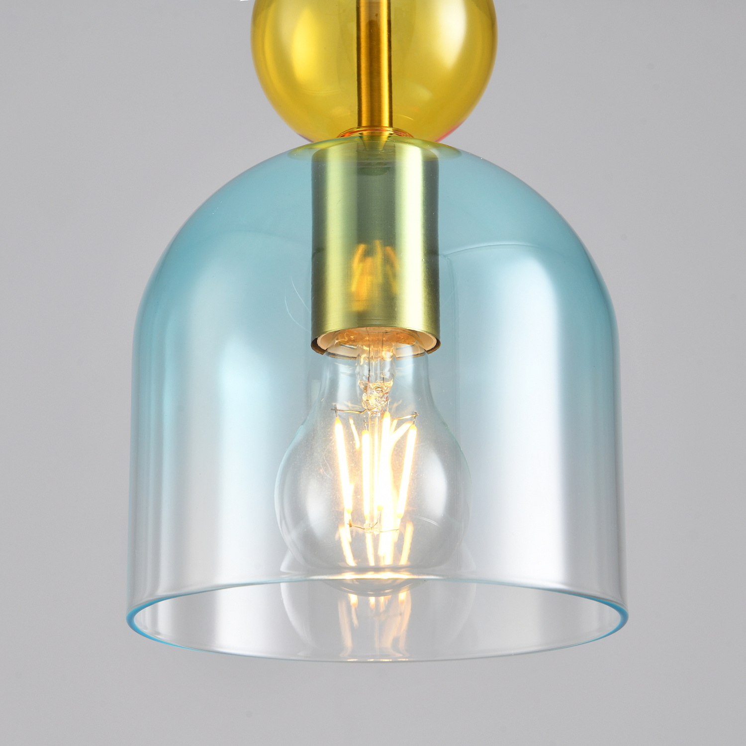 Główny klosz w odcieniu niebiesko-przezroczystym z delikatnym efektem gradientu jest wykonany ze szkła.