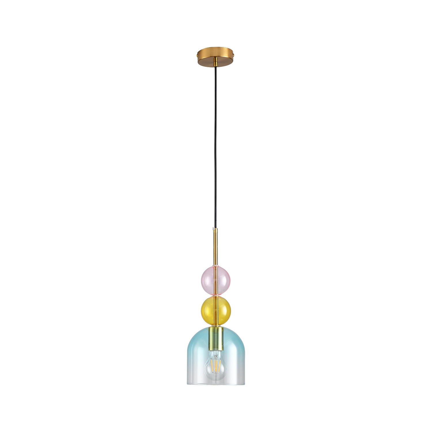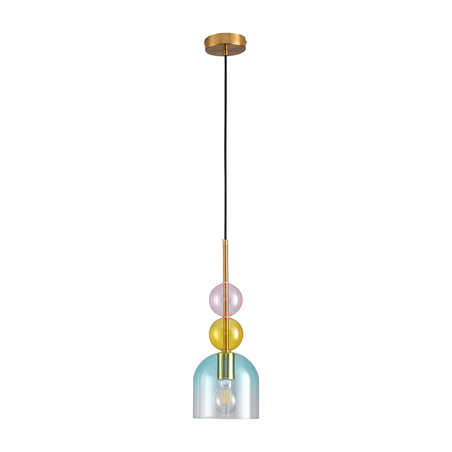 Lampa PASTELLO BLUE posiada miejsce na żarówki o gwincie E27 (widoczne przez transparentny klosz).