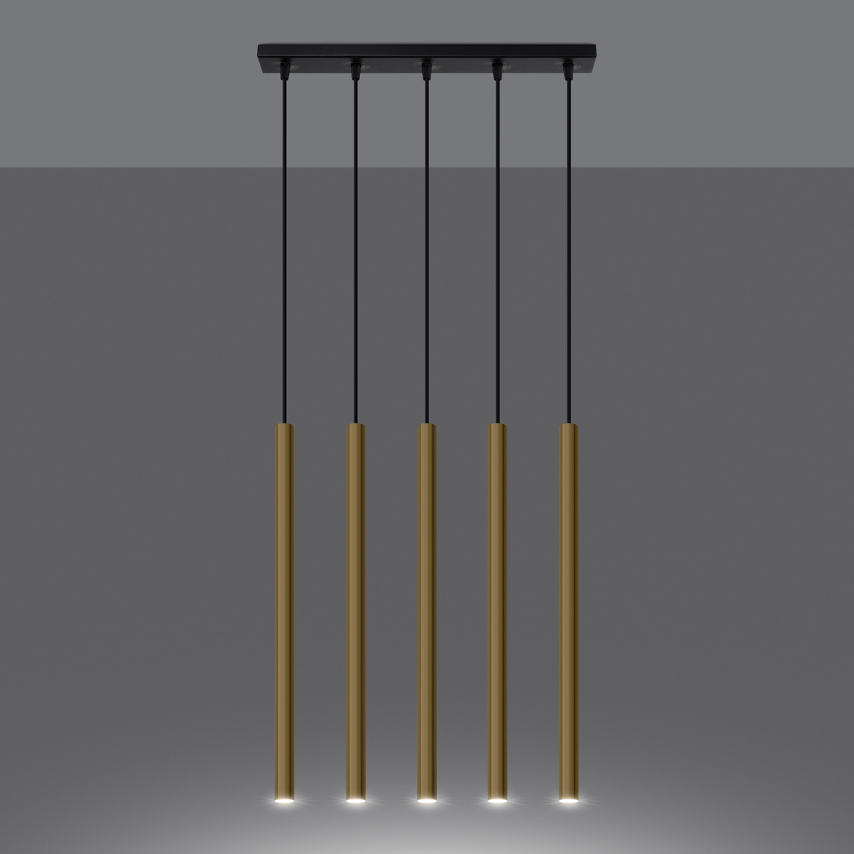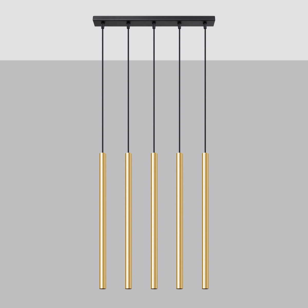 - Źródło światła: G9, 5x max 8W LED, ~230V, 50Hz, IP20, klasa ochronności IŹródło światła nie jest w komplecie.Wymiary: 45/5/90 cmMateriał: stalKolor: złoty połysk