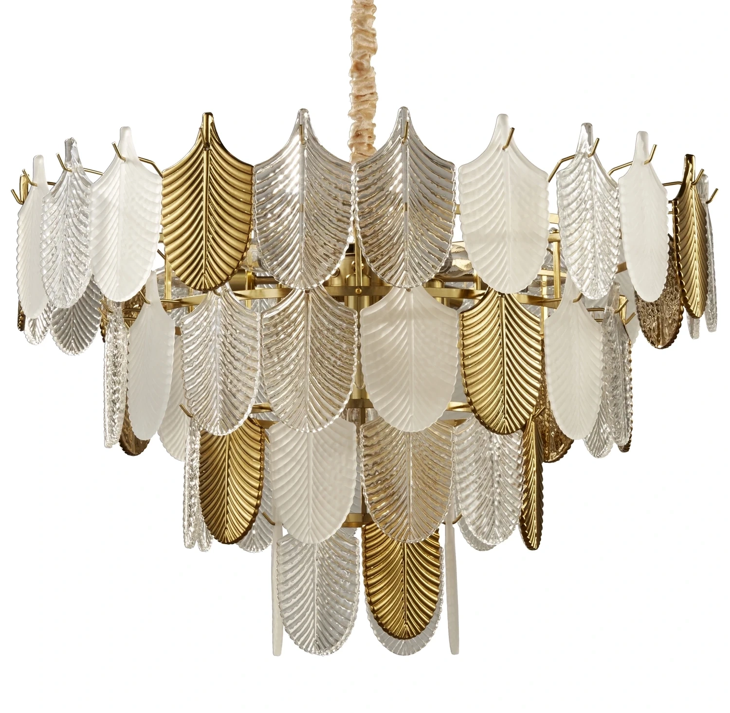 - Efektowna lampa wisząca udekorowana metalowymi płatkami.