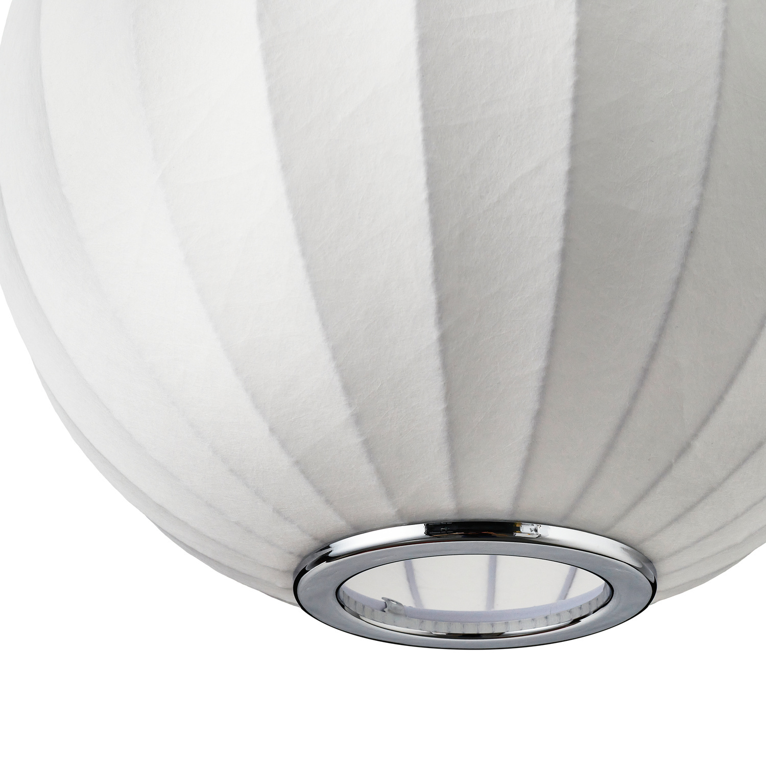 - Lampa wisząca o kulistym kształcie pokryta jedwabiem.
