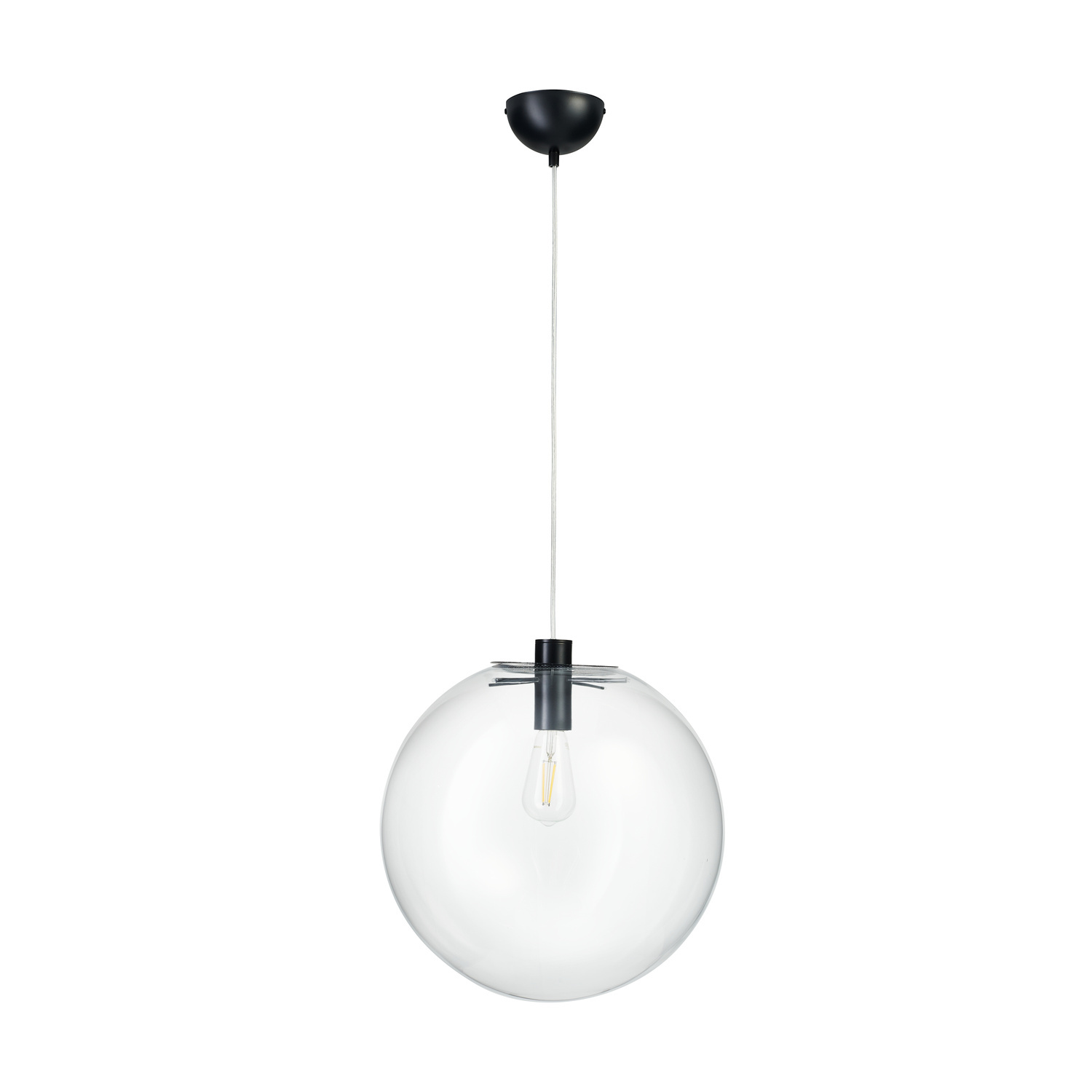 Minimalistyczna, subtelna lampa wisząca TONDA w kształcie szklanej kuli, wykonana jest z transparentnego szkła.