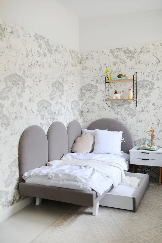 Możesz również dokupić do łóżka tapicerowane boczki zabezpieczające, które zwiększą bezpieczeństwo dziecka oraz pojemną szufladę na kółeczkach, będącą perfekcyjnym schowkiem na pościel, zabawki czy sezonowe ubrania.
