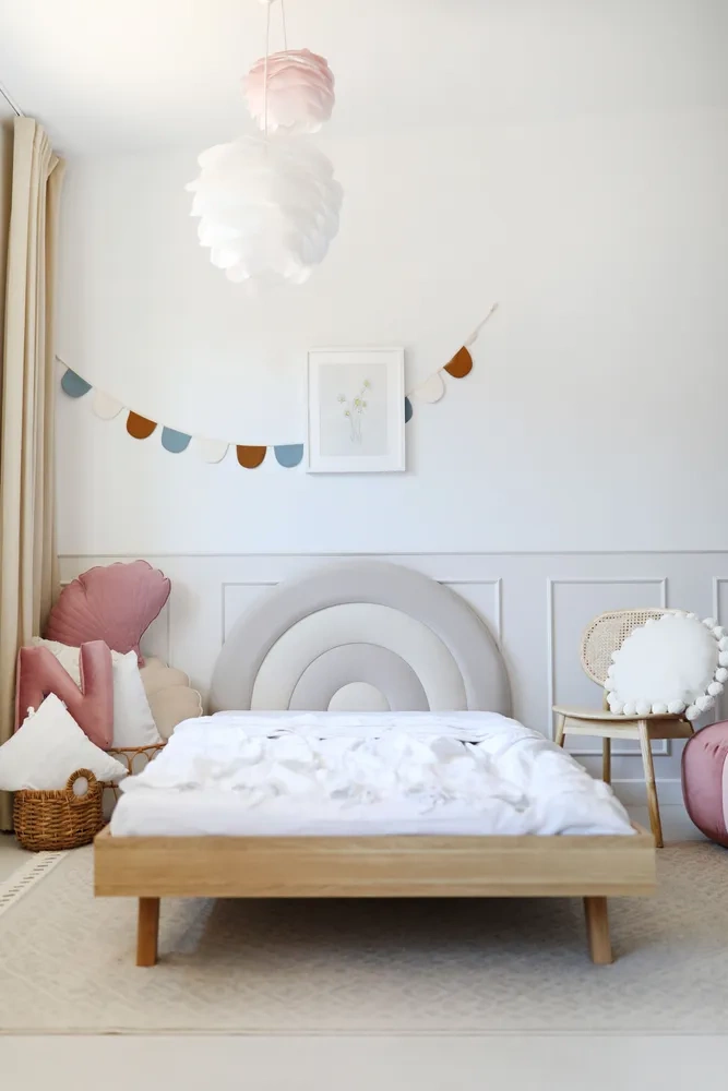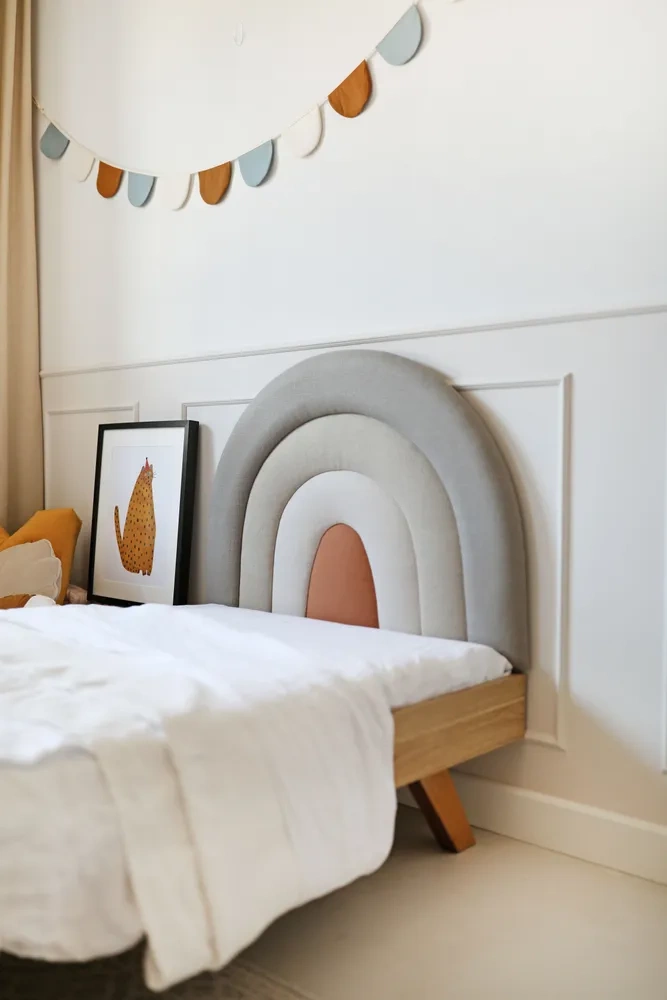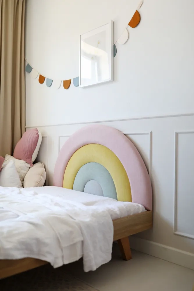 Jeśli szukasz oryginalnego łóżka do pokoju dziecięcego, które przyciągnie wszystkie spojrzenia, zachwyci designem, a dziecku zapewni komfortowy sen, to łóżko dziecięce Rainbow z tęczowym zagłówkiem na drewnianych nogach jest propozycją doskonałą.