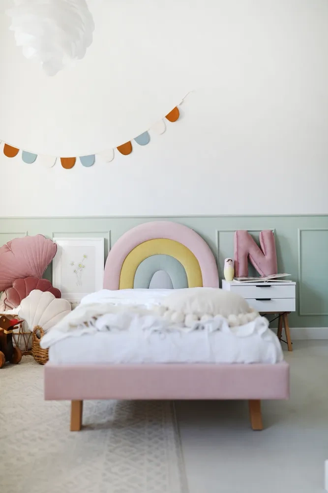 Przedstawiamy Państwu bajeczne tapicerowane łóżko dla dziecka z zagłówkiem w kształcie tęczy. Rudości, błękity i zielenie, a może pastele? Zdecyduj sam, które kolory ożywią pokój Twojego malucha. Z rodzinną manufakturą Minko urządzisz swój dom w dobrym stylu.