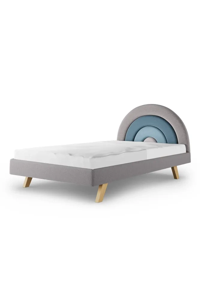 Łóżko dziecięce RAINBOW LEGS TEXTI to wersja z lekką, tapicerowaną ramą oraz z tęczowym zagłówkiem dostępnym w 5 zestawieniach kolorystycznych. Rama łóżka otapicerowana jest tą samą tkaniną, co ostatni, zewnętrzny łuk tęczy. Materiały, których używamy do produkcji naszych mebli, posiadają certyfikat OEKO TEX, co oznacza, że są ekologiczne i bezpieczne dla Ciebie i Twojego dziecka. Łóżko posiada solidną, drewnianą konstrukcję, która zagwarantuje bezpieczeństwo podczas zabawy i odpoczynku. Najwyższej jakości stelaż, wykonany z drewnianych, bardzo elastycznych listewek “pracuje” razem z materacem i zapewnia komfort podczas snu. Nogi łóżka wykonane zostały ze szlachetnego, naturalnego drewna bukowego lub dębowego.