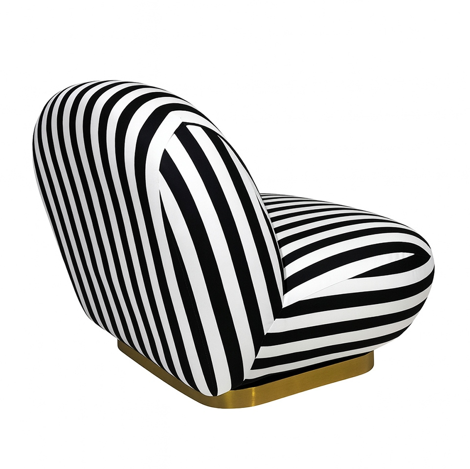 Wyrazisty mebel, który przyciąga wzrok swoim dynamicznym wzorem czarno-białych pasów.