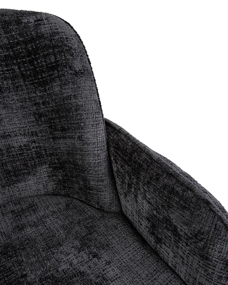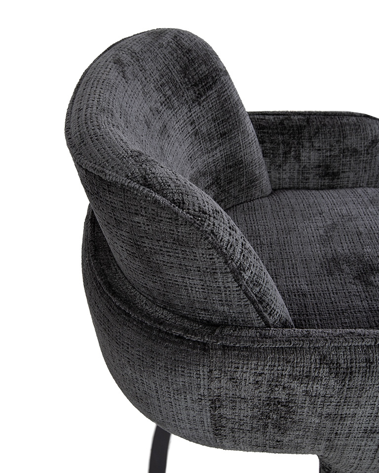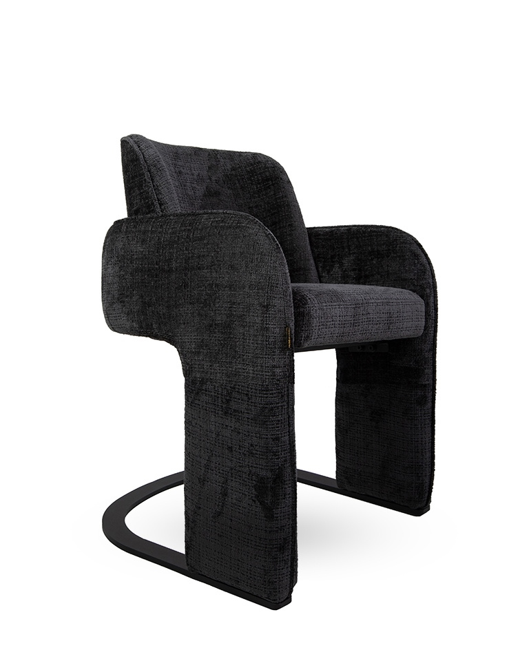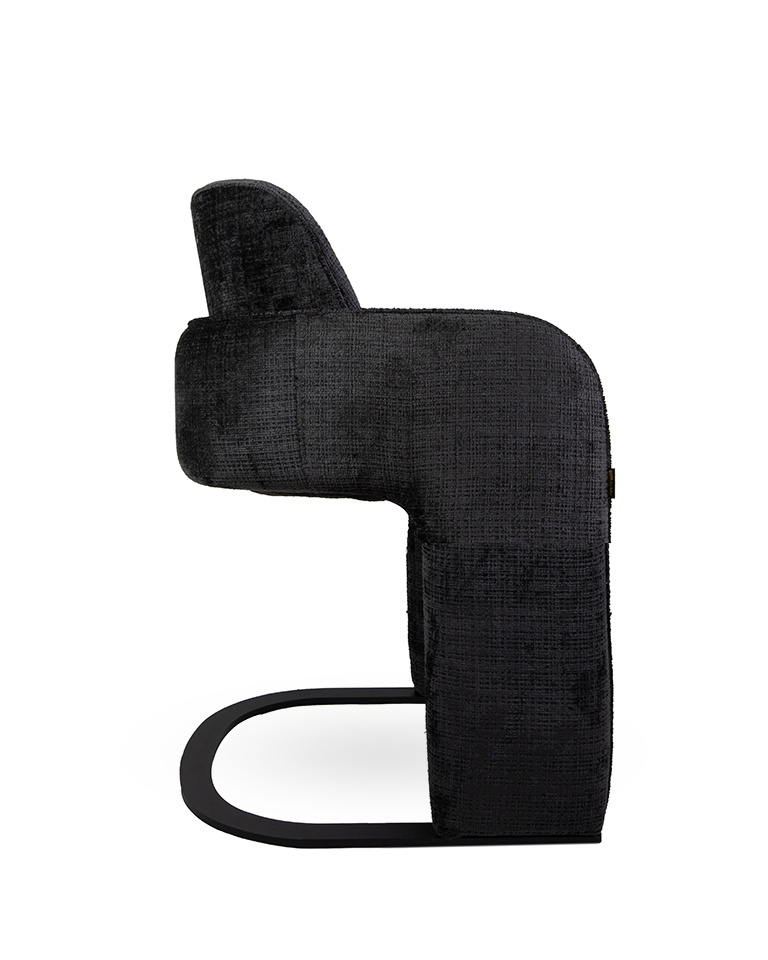 • MaMaison krzesło BORA czarne. Współczesny design połączony z artystyczną formą. Solidna metalowa podstawa zapewnia stabilność i nowoczesny charakter. Wykończone tkaniną Davis Cremona 97 w głębokiej czerni, krzesło wprowadza elegancję i wyrafinowanie. Niet