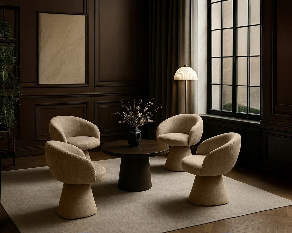 Funkcja obrotu z mechanizmem autopowrotu zwiększa wygodę użytkowania – siedzisko zawsze wraca do pozycji wyjściowej, co sprzyja utrzymaniu porządku i estetyki wnętrza. Pedra doskonale sprawdzi się zarówno w salonie, jak i w eleganckim lobby czy przestrzeni komercyjnej.