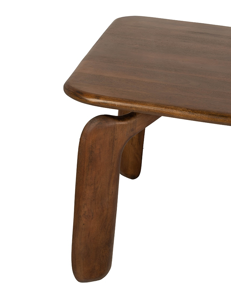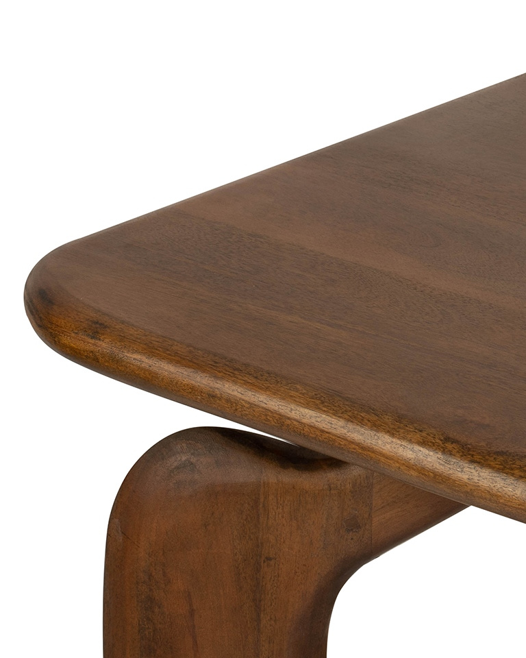 W całości wykonany z naturalnego drewna mango zachwyca ciepłym brązowym odcieniem i subtelnym wykończeniem, które podkreślają jego organiczny charakter.