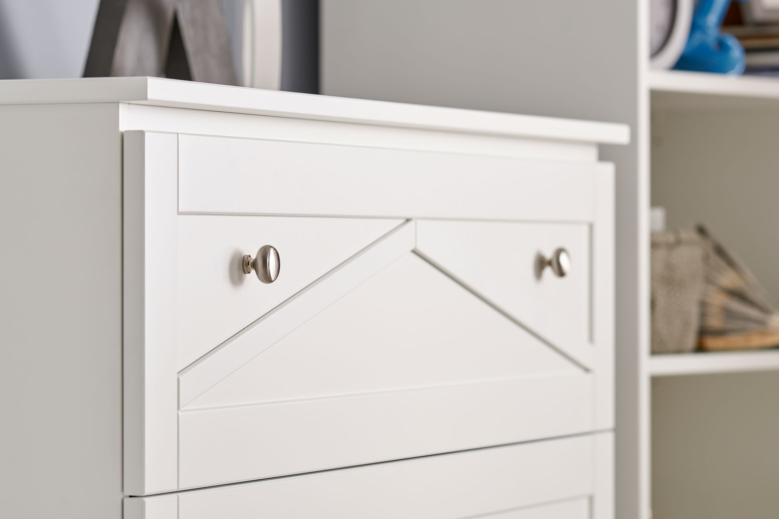 Pojemna komoda posiada 3 szuflady na wysokiej jakości prowadnicach z hamulcem i samodomykiem. Gałki są metalowe. Do komody można dokupić demontowalną nakładkę do przewijania.
