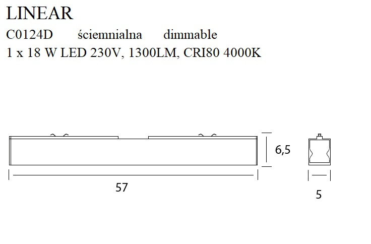 - Moc/Power: 1 x 18W LED 230V, 1300 LM