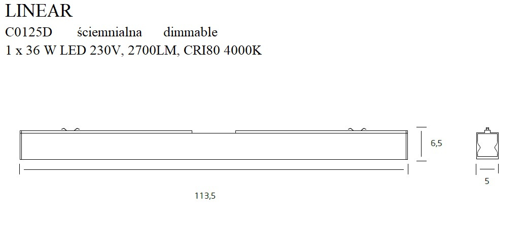 - Moc/Power: 1 x 36W LED 230V, 2700 LM