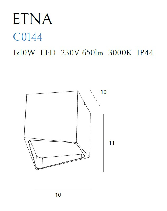 - Moc/Power: 1 x 10W LED 230V, 650 LM 3000K, IP44